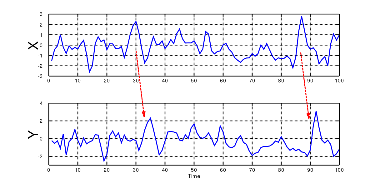 Granger (1969, 1980) developed a statistical method to take two time series and determine whether one is useful for forecasting the other